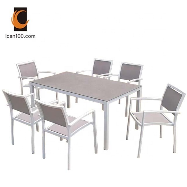 Aluminum frame outdoor glass table set(6chairs+1table)