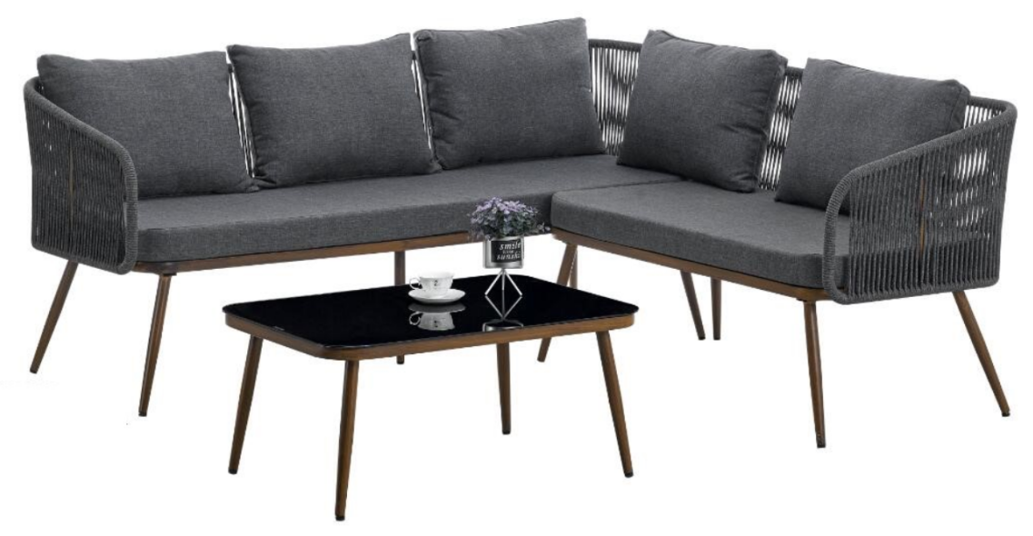 woven belt rope L shape corner sofa set chair and table