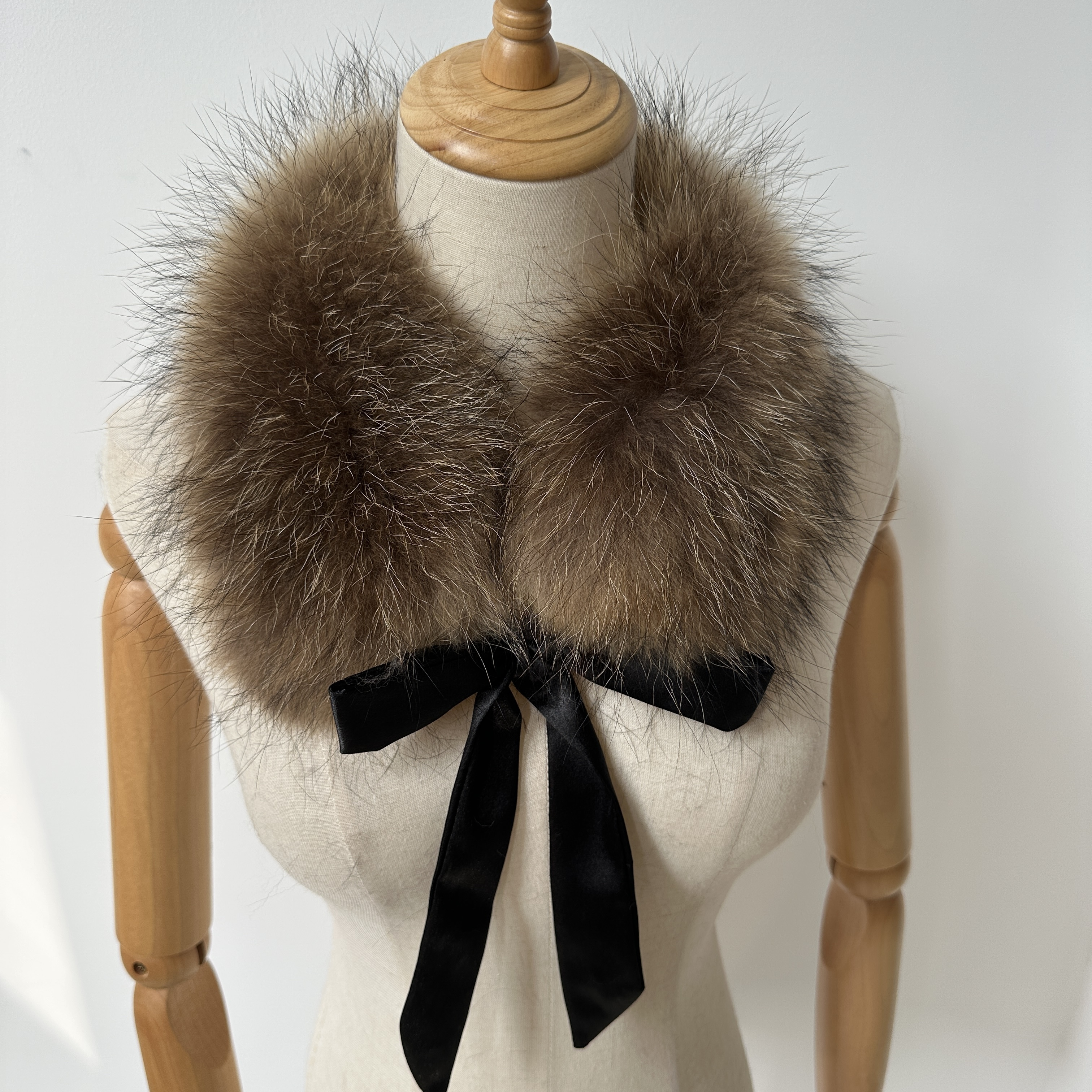 Custom Real Fox Fur Collar With Silk Ribbon Winter Raccoon Fur hood Trim Strips Collar Natural Fur Scarf Shawl