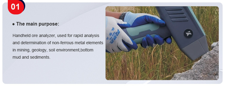 Including gold ore, silver ore, copper ore, iron ore, tin ore, zinc ore, nickel ore, molybdenum ore, iridium ore, arsenic ore,lead ore, titanium ore, antimony ore, manganese ore, vanadium ore, iodine ore, sulfur ore , potassium ore, phosphate ore, uranium ore and other natural ores, slag, rocks, soil and mud from phosphorus to uranium. The sample to be detected can be solid, liquid, dust, powder, solid body, fragments, filter material, film layer and other tangible objects.