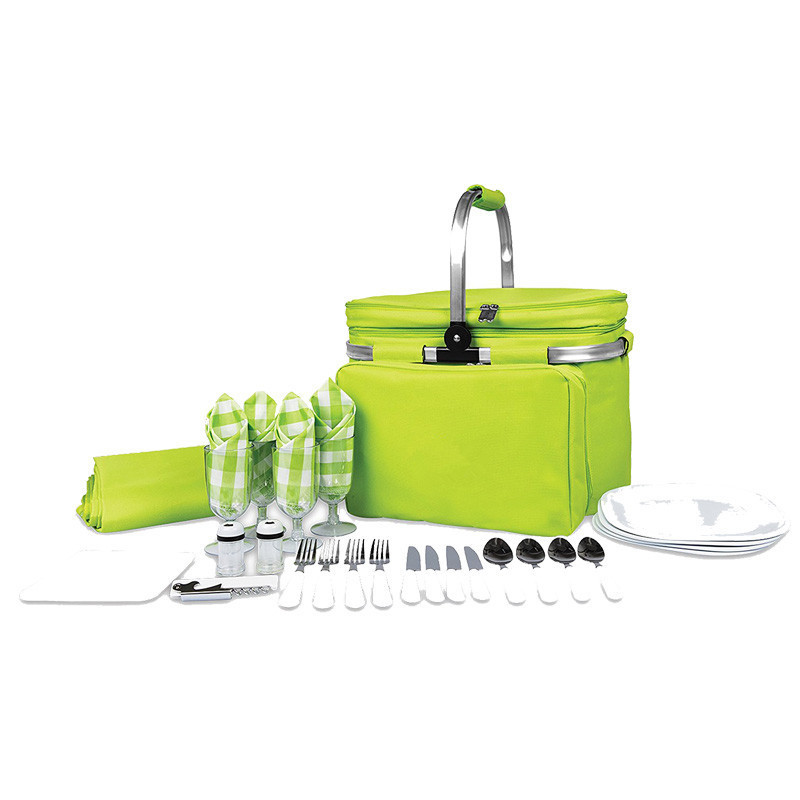 · Foldable Insulated Picnic Basket with service for 4 and a water resistant blanket