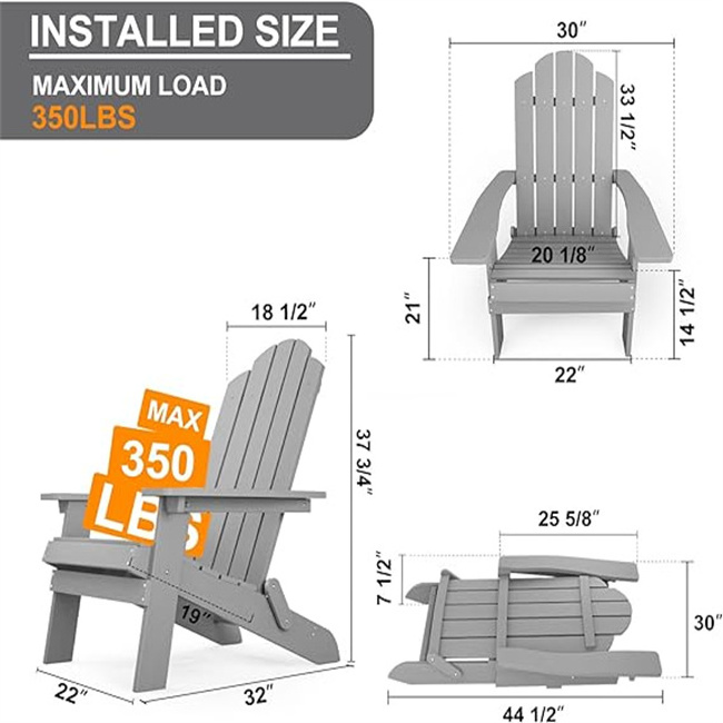 rot for years to come. Patio chair’s net weight is 32.2lbs, built to withstand all weather condition (heat, snow, coastal wind, salt spray) and heavy weight (up to 350lbs) with ease, no wobbly/rickety problem. * [ RELAX & COMFORTABLE YARD CHAIR ] – MXIMU classic folding Adirondack chairs feature large slanted seat (20-1/8" wide, 19" deep), high backrest (bottom to top 33-1/2"), wide armrests (5" wide), Measure 34-1/4 x 30 x 37-3/4 inch (D x W x H, ASSEMBLY Required), can relieve pressure of the neck & shoulder, provide a comfort spot to sit, enjoy relaxing/unwinding /chatting, perfect gift for your family. * [ ROUND YARD TABLE SIZE ] - 18”(DIA.) X 18”(H), extra storage space is available under the slatted tabletop, our Adirondack style side table provides more room to store items such as a lamp, a book, food and drink coasters than ordinary side tables, tabletop is strong enough to hold max weight capacity of 200 pound. * [ PERFECT INDOOR/OURDOOR DECK END TABLE ] - Dynamic use in patio, garden, lawn, terrace, pool area to complement your Adirondack chairs, chaise lounges and sofa, also suitable in living room, bedroom, kitchens, as an office end table or plant stand. It is a good companion for the Adirondack chair. * [ SATISFIED PRODUCT & SERVICE ] - Comes with stainless steel hardware and step-by-step instruction, every parts marked with part number, professional customer service & prompt delivery, offers 5 years warranty, any questions about your product, please don't hesitate to contact us. |