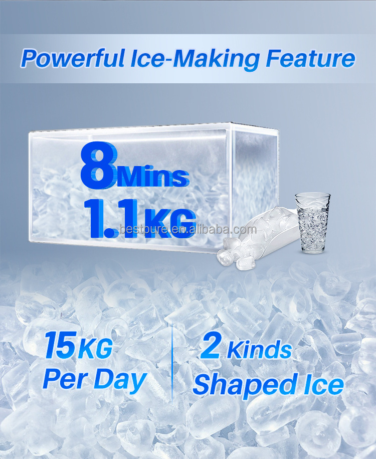 This water dispenser with built-in ice maker delivers 18 chewable bullet-shaped ice cubes or 1.1 kgs crushed-shaped ice in just 8 minutes per cycle to meet your ice making needs.