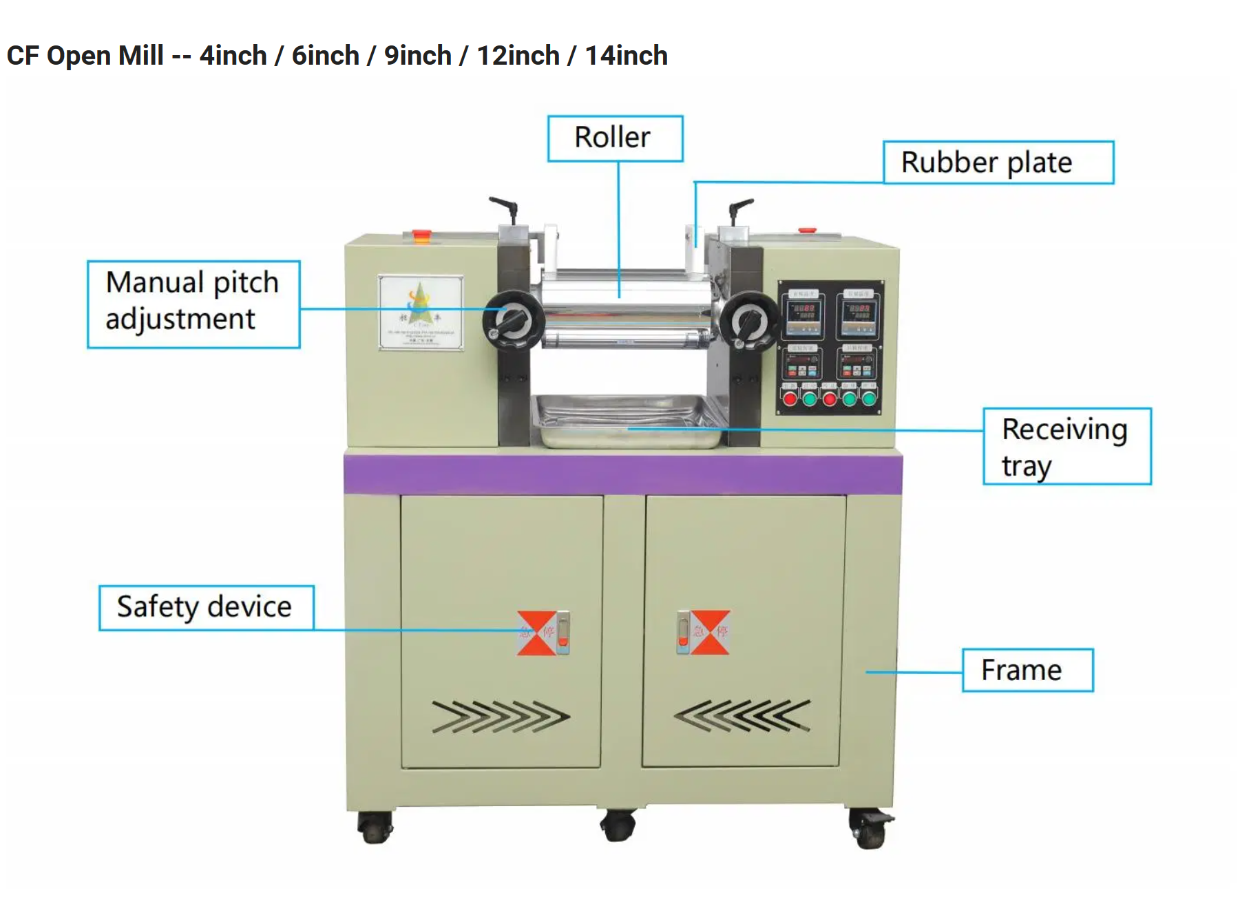 This experimental type open mixer mill is suitable for the mixing and dispersing of engineering plastics, pigment masterbatch, silicone rubber and other polymers; The double rollers are mirror-chromed with electric heating and water cooling, the surface temperature of the roller is uniform. The space between the two rollers is adjustable; Multi-directional Safety protection device make it safe and reliable, durable.