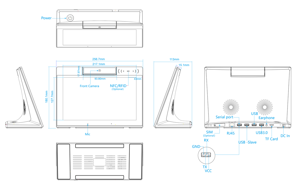 * Support optional Capacitive touch, printer, NFC, camera, POE, etc to meet variety of request from the market.