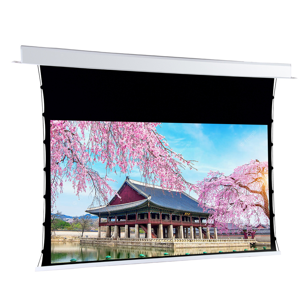 Motorized Operation: Featuring a motorized lifting system, users can effortlessly control the screen's ascent and descent with a remote control or a smartphone app, offering convenient and swift operation.