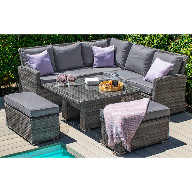 Left Hand Sofa - H84cm x W120cm x D73cm Right Hand Sofa - H84cm x W192cm x D73cm Bench - H34cm x W80cm x D40cm Rising Table - H45/69cm x W100cm x D100cm |
