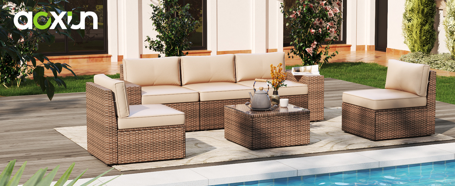 Modern Design Luxury Powder coated Aluminum Patio Furniture 6 Pcs Outdoor Sofa Set for Hotel Villa