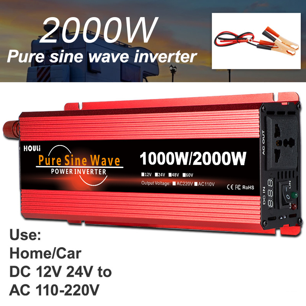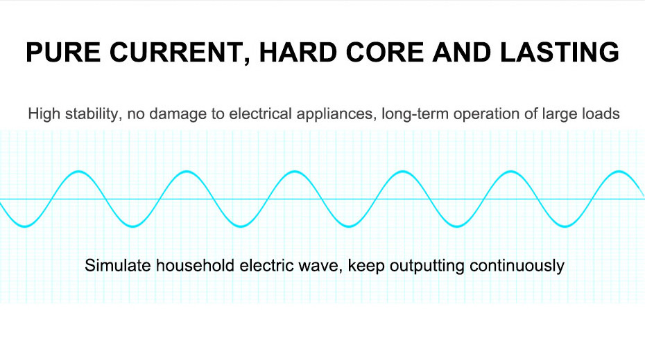 Pure sine wave, intelligent filter, does not interfere with electrical appliances, protects electrical appliances. With high conversion efficiency (up to 95%), the low power consumption of the product itself can greatly extend battery life.