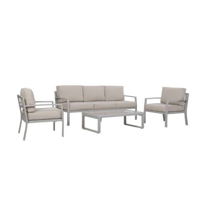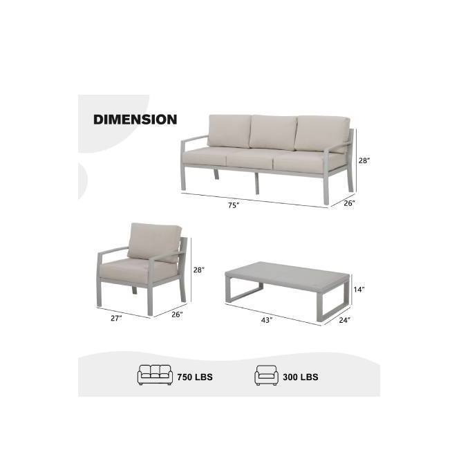 - Sink into the deep-seated comfort for a while in this metal furniture! Built from an ALUMINUM-reinforced frame and treated to be exceptionally resistant to UV, rust and water, it’ll withstand nearly any weather. Despite its lightweight feel, our patio furniture couch set with a center support leg increases stability and ensures a large load bearing.