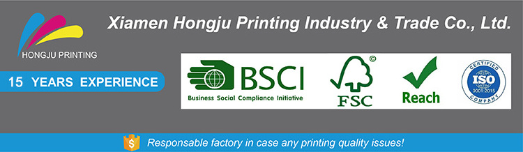 Xiamen Hongju Printing Industry & Trade Co.,Ltd was established in 2006, and located in the lively city Xiamen. We have been a professional printing factory for 12 years, with providing high quality services to the customer which from our homeland even all around the world.