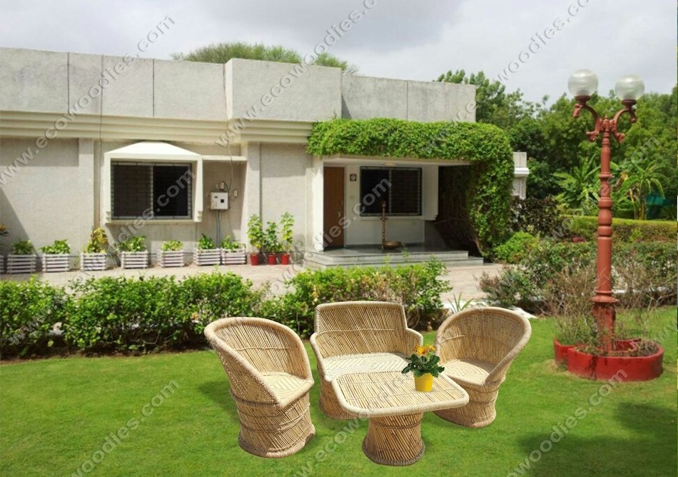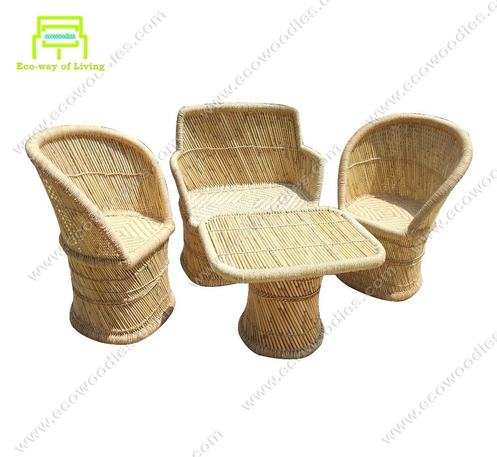 Woven Bamboo Table Chair Set