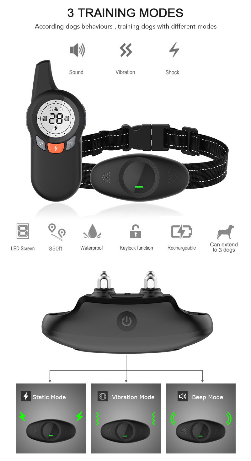 Anti Bark Dog Slave Shock Collar Vibration Barking Collar 850 Feets Remote Range Dog Training Collar