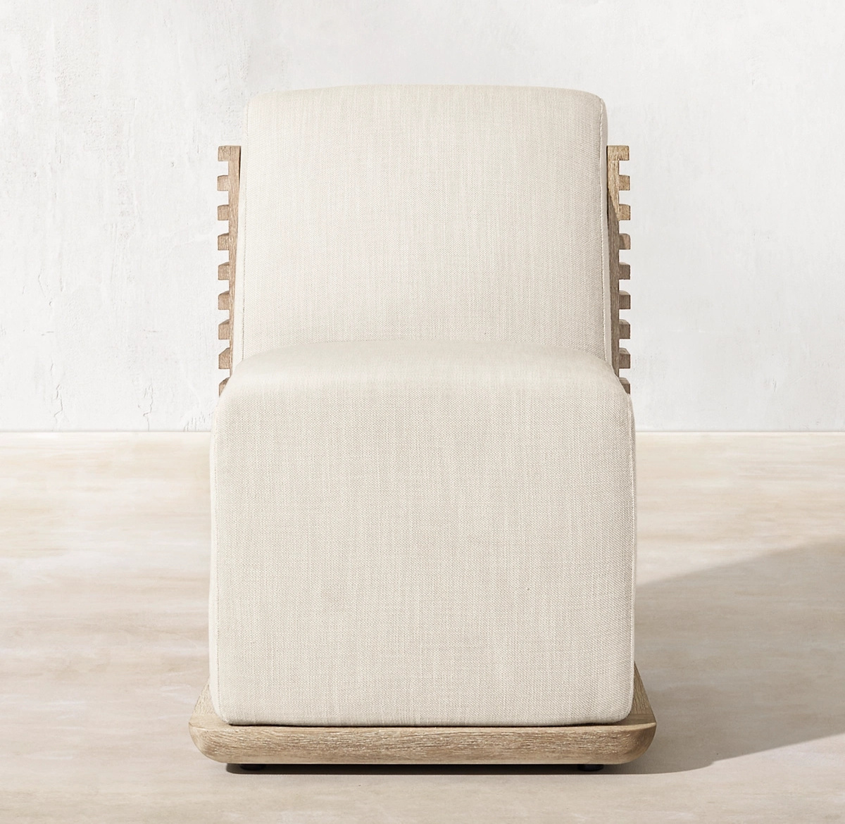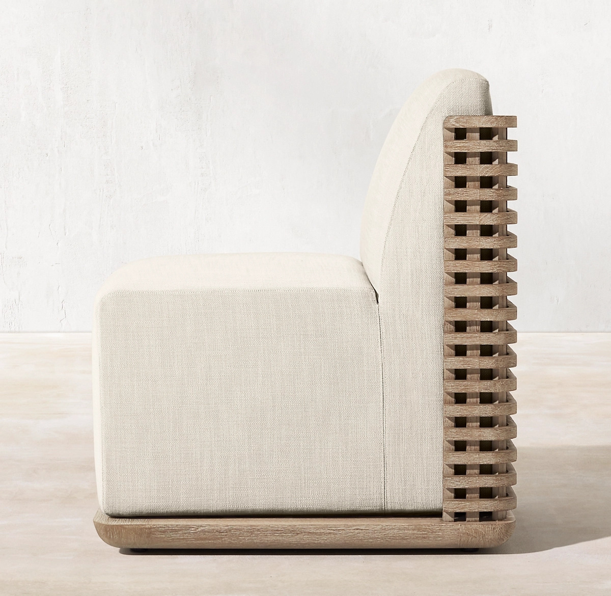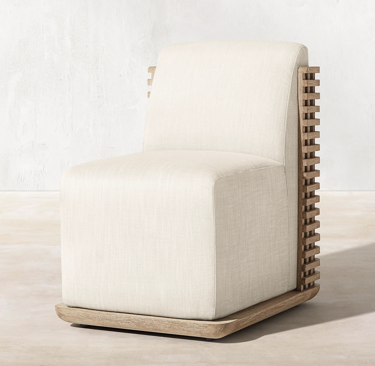 Outdoor patio upholstered furniture curved lattice frame all-weathered teak wood luxury dining chairs