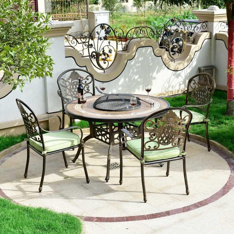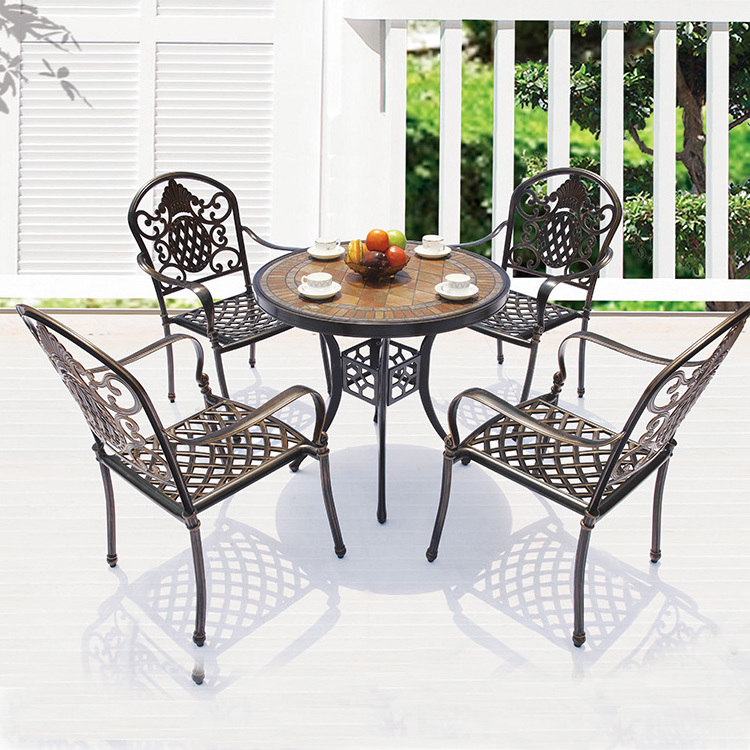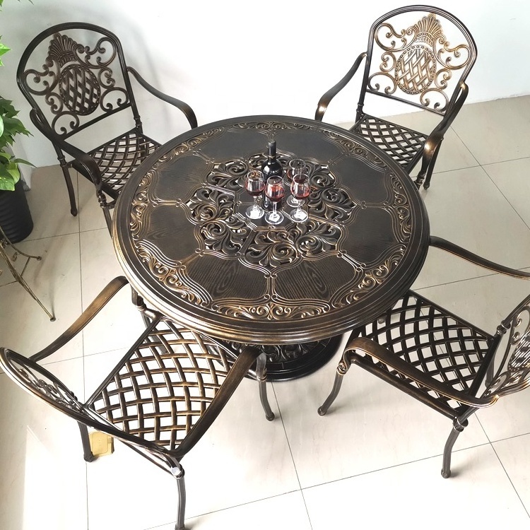 Outdoor cast aluminum table and chair