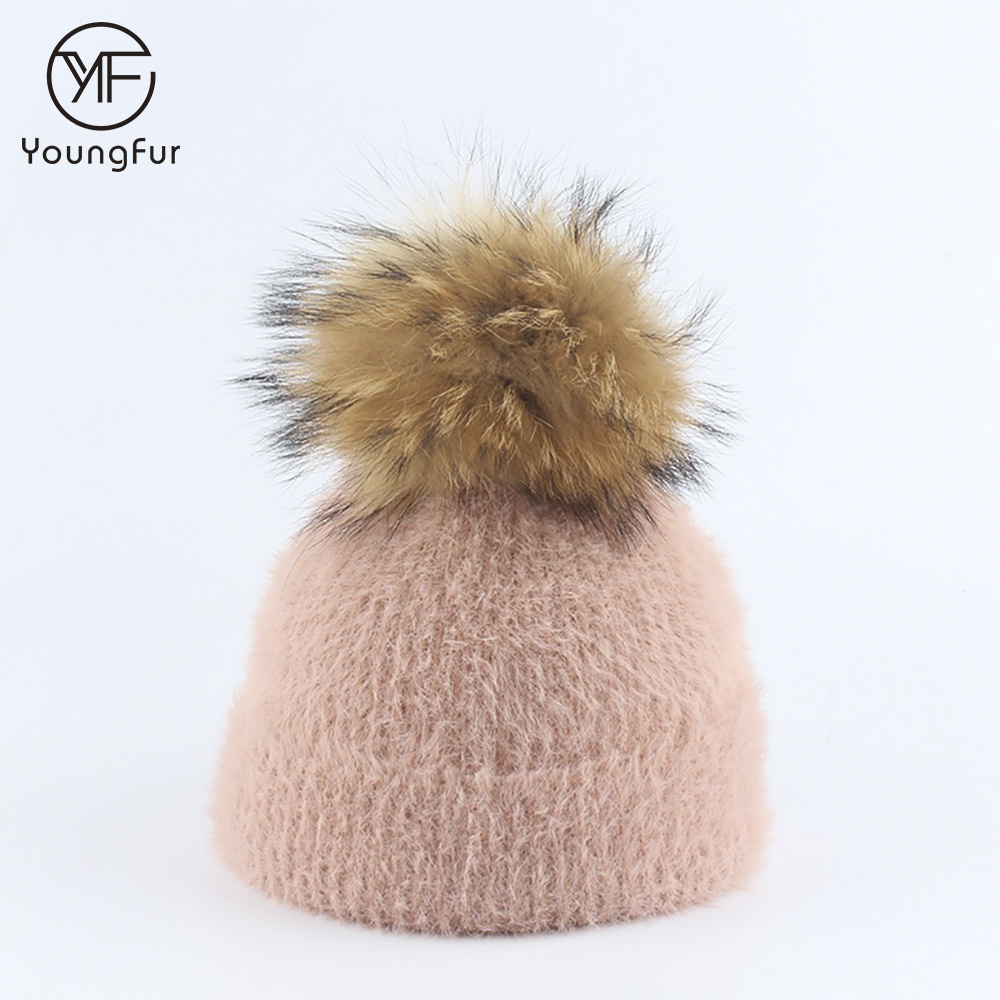 Factory Wholesale Winter Raccoon Fur Knitted Imitate Mink Fur Hat For Children