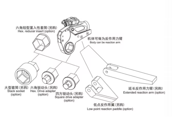 Aluminum Titanium Alloy Manufacturing 14/S80 MHW Simple Operation Rust Proof Materials Hollow Hydraulic Torque Wrench