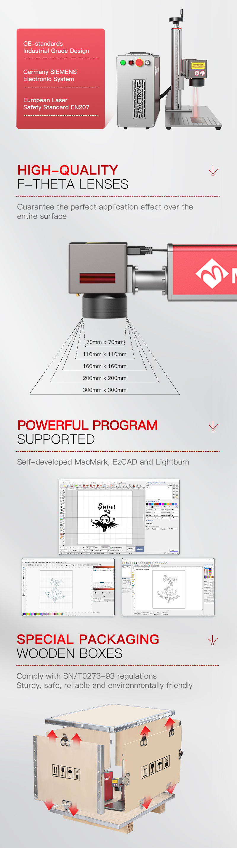 The high quality fiber laser with strong beam quality and high efficiency galvo head with dual red light positioning system for precise positioning. It has the advantages of low consumable, non - toxic and no pollution.