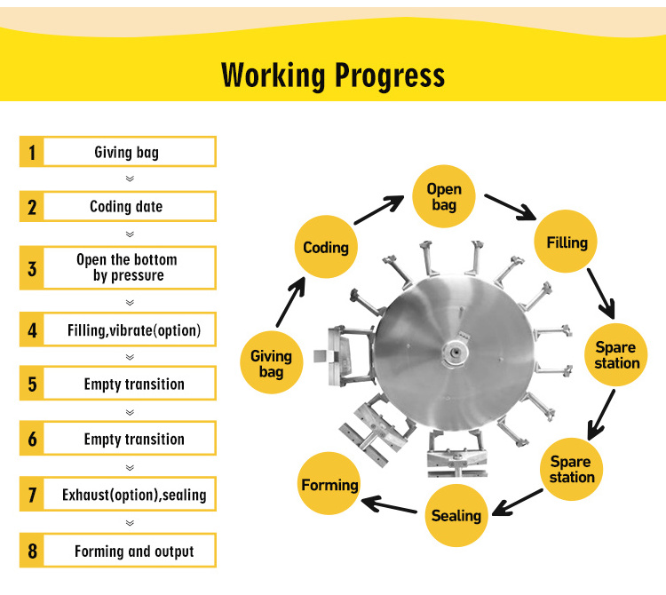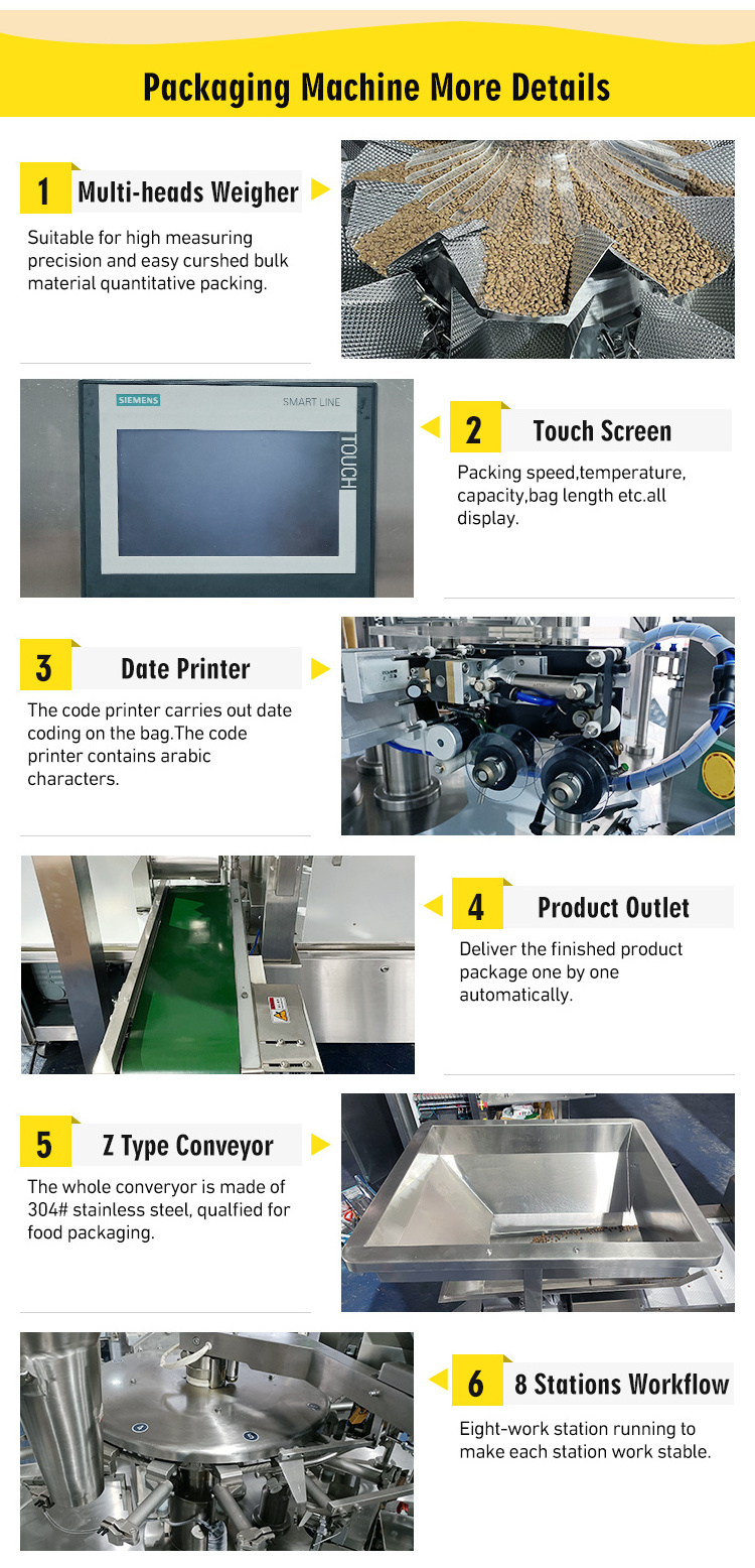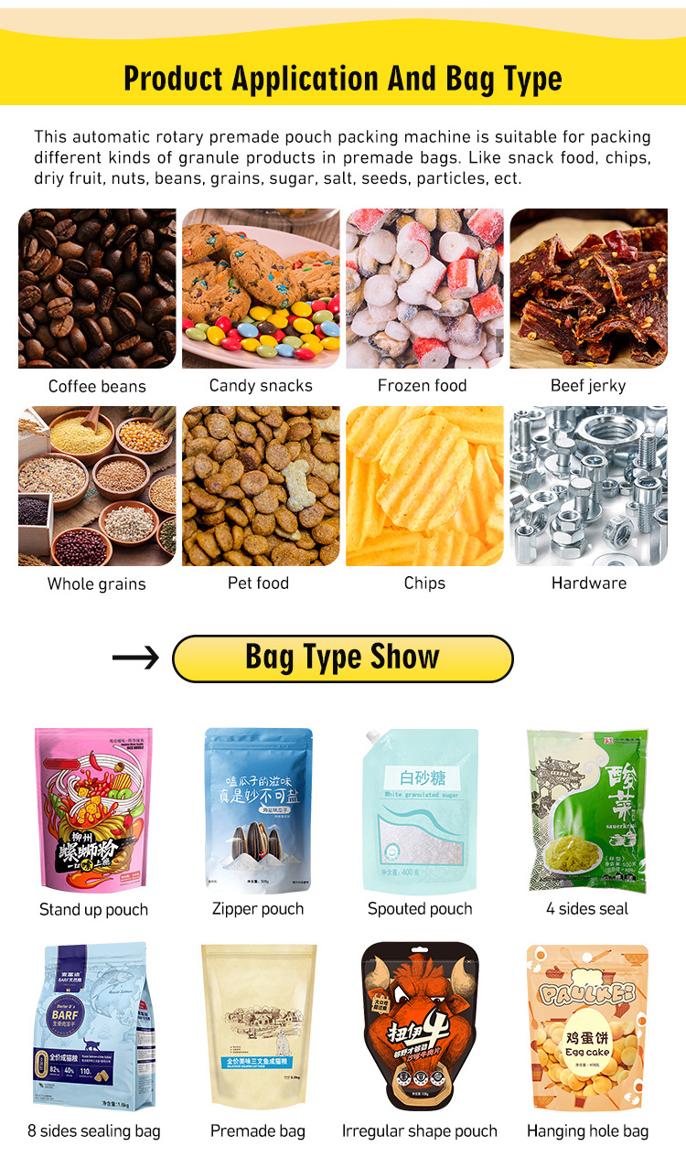 4. The product and pouch contact parts are adopted stainless steel and other advanced material to guarantee the hygiene of products.