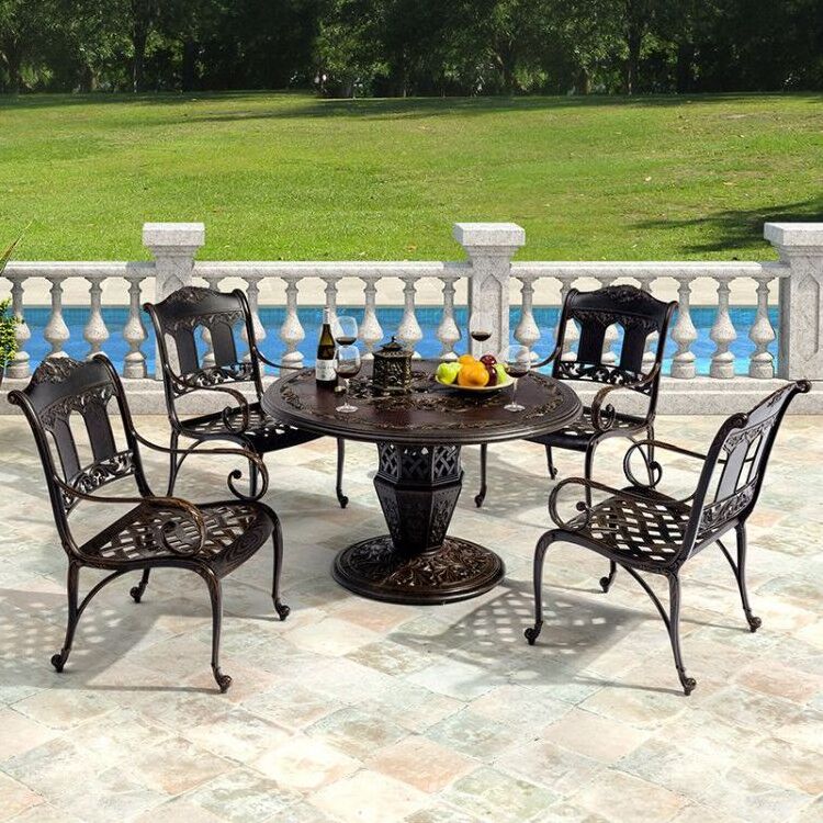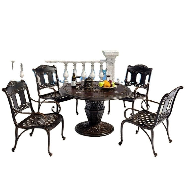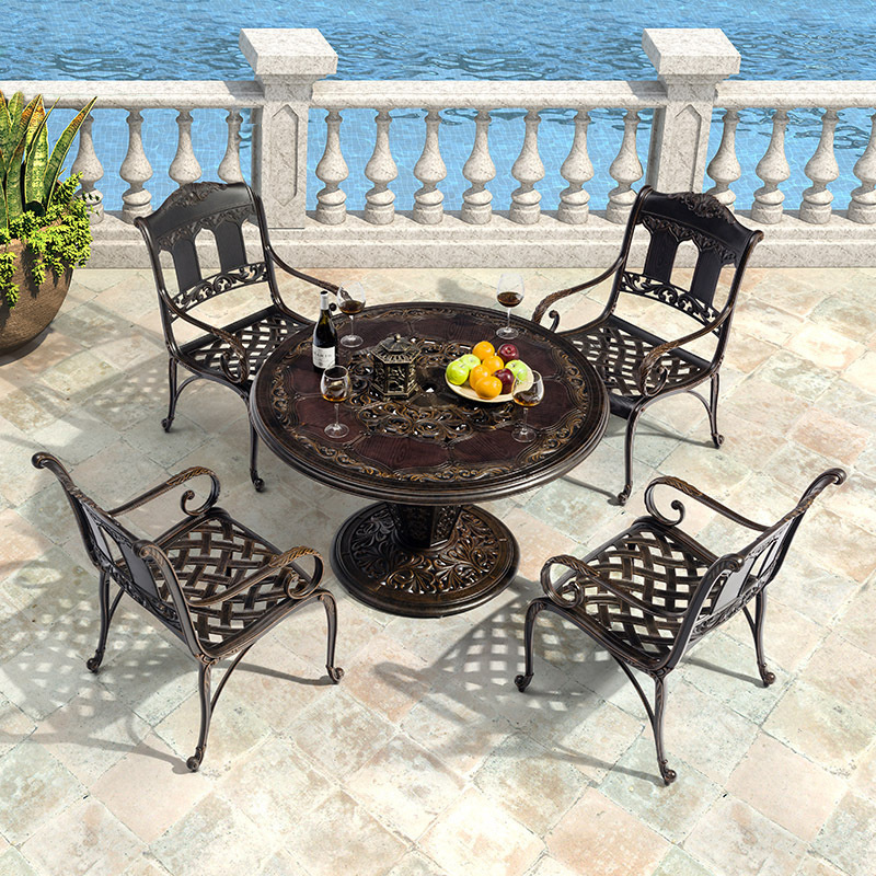 Outdoor cast aluminum table and chair
