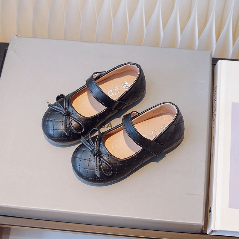 2024 Spring and Autumn New Girl's Bow Princess Leather Shoes Korean Edition Square Mouth Shoes Female Baby Casual Single Shoes