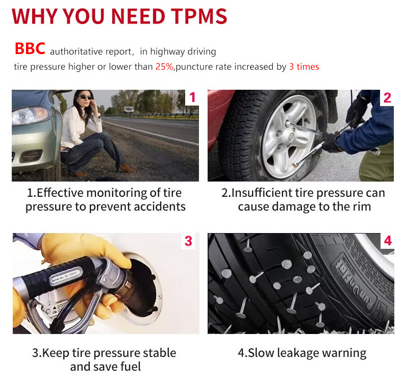 3.Real-time tire data monitoring, visual/Audible alarm.