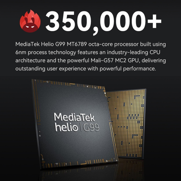 4. CPU: Helio G99 (MTK6789) Octa-core processor (2xCortex A76 2.0GHz + 6xCortex A55 2.0GHz)