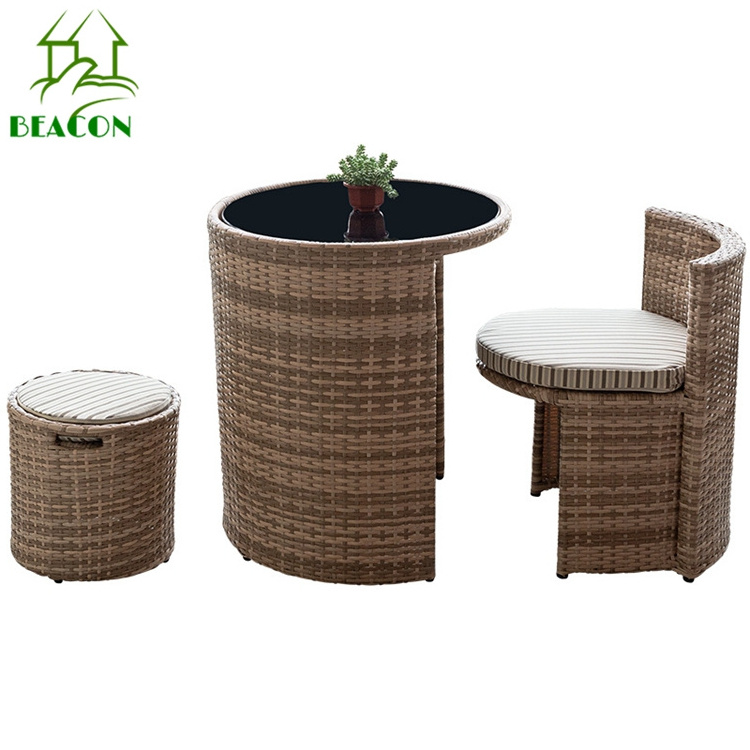 Save place fashion rattan wicker garden patio chair with ottoman patio set for small space