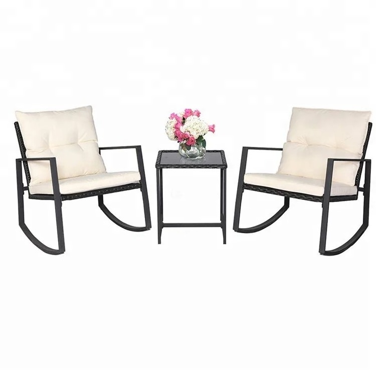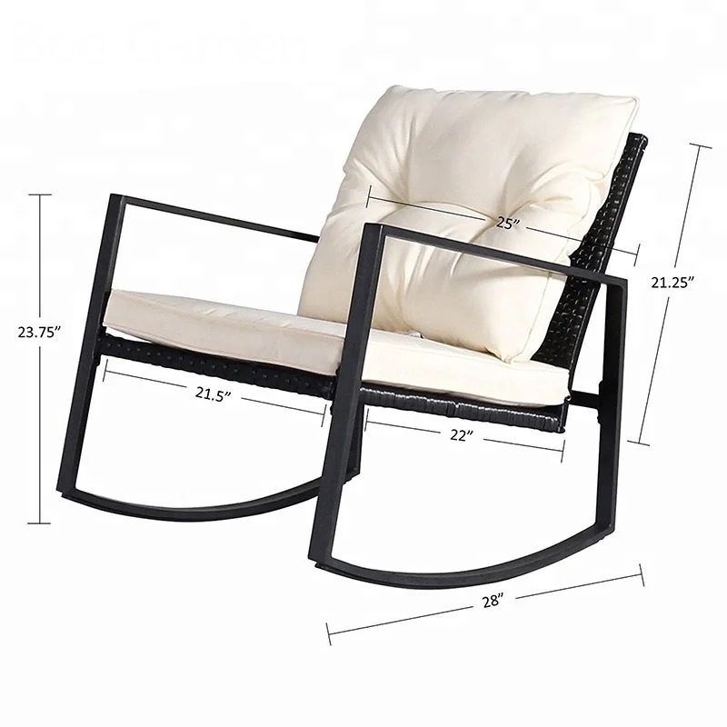 outdoor rocking glider 3pcs metal soft comfortable relax wicker rocking chair Relax Chair removable Cushion mail order pack