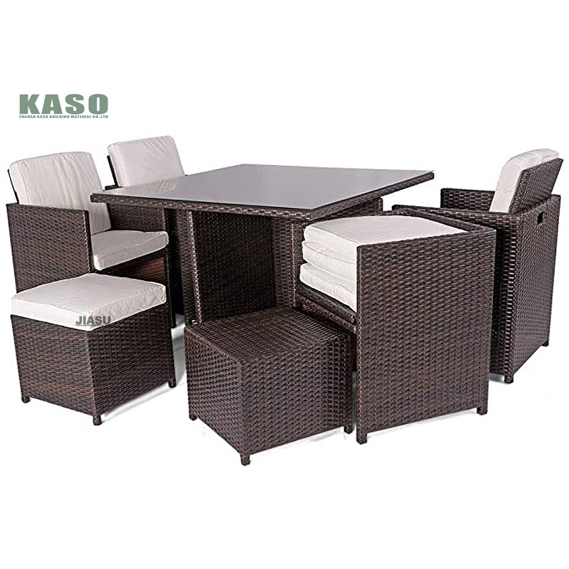 11 Seats Cube Rattan Outdoor Wicker Sofa Garden Furniture Dining Room Sets With Tempered Glass Table