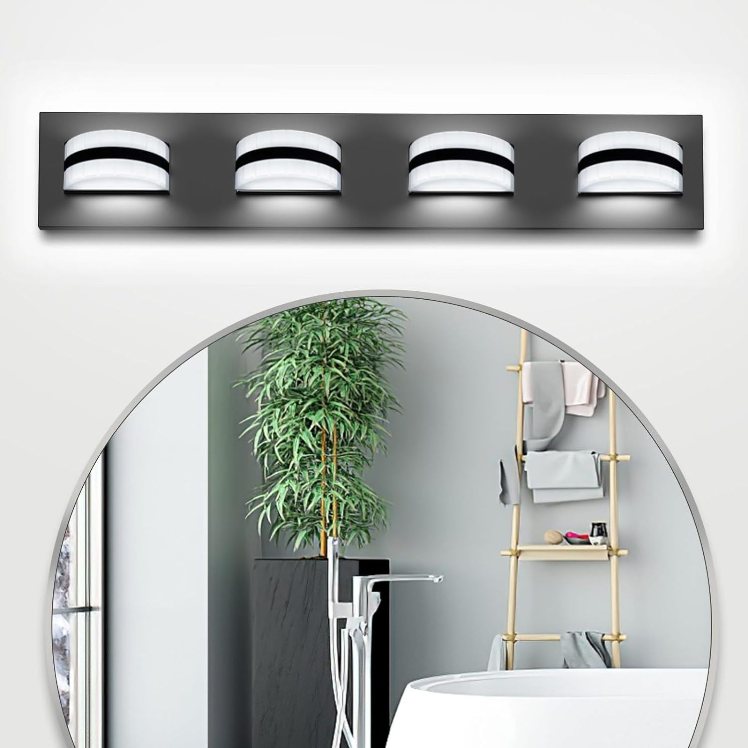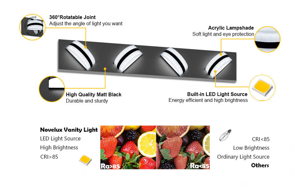 Worbest Acrylic 5000K Dimmable Vanity Lighting Fixtures Ceiling 4 Lights Black Led Vanity Lights For Bathroom