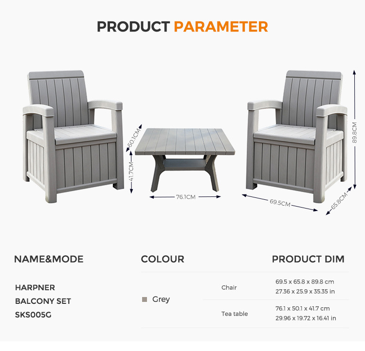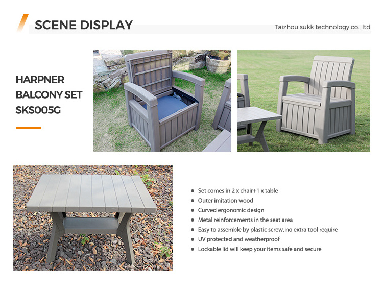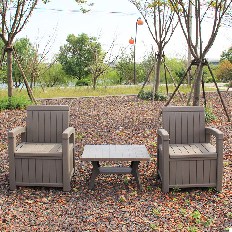 Outdoor Commercial Plastic Storage Sofa Garden Tables And Chairs Set 2 Seat