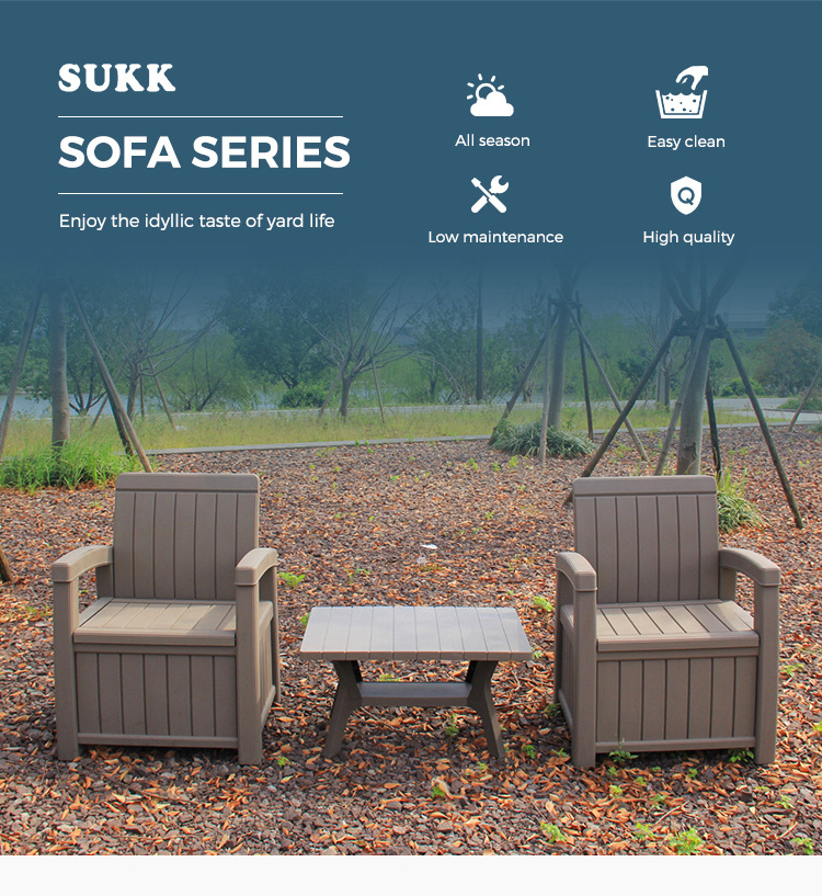 Outdoor Commercial Plastic Storage Sofa Garden Tables And Chairs Set 2