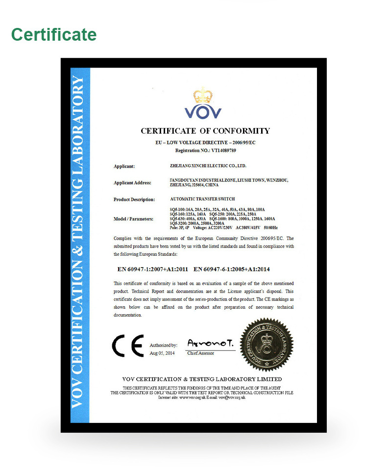 Main power and standby power or mutual standby power change over system or city power and generator group overload switch-over. At the same time, it can operated under un-frequency on and off circuit act as disconnector.