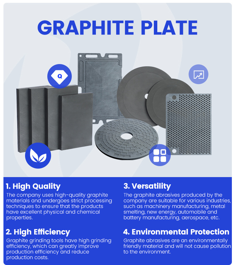 Our graphite plate is made of graphite or flake graphite as raw material, after mixing, pressing, roasting, carburizing, crushing and other processes. It has the characteristics of light weight, high strength, strong corrosion resistance, good thermal conductivity and easy processing, and is widely used in the field of new energy, metallurgical industry, machinery industry, aerospace and other fields
