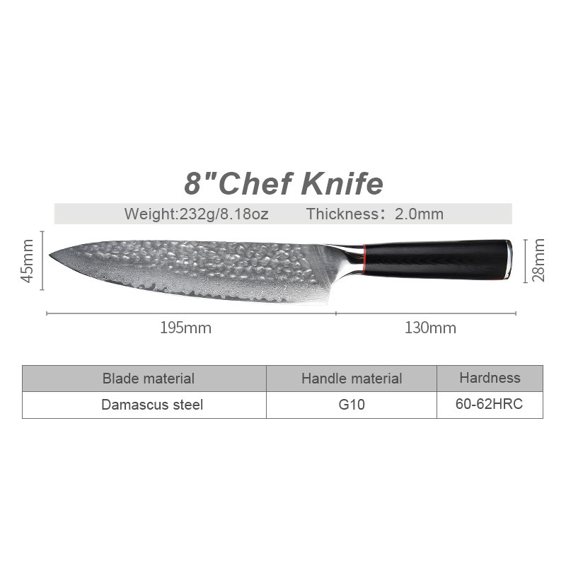 High Quality Hand Forged Damascus Knife Carbon Steel 8 Inch Kitchen Knife