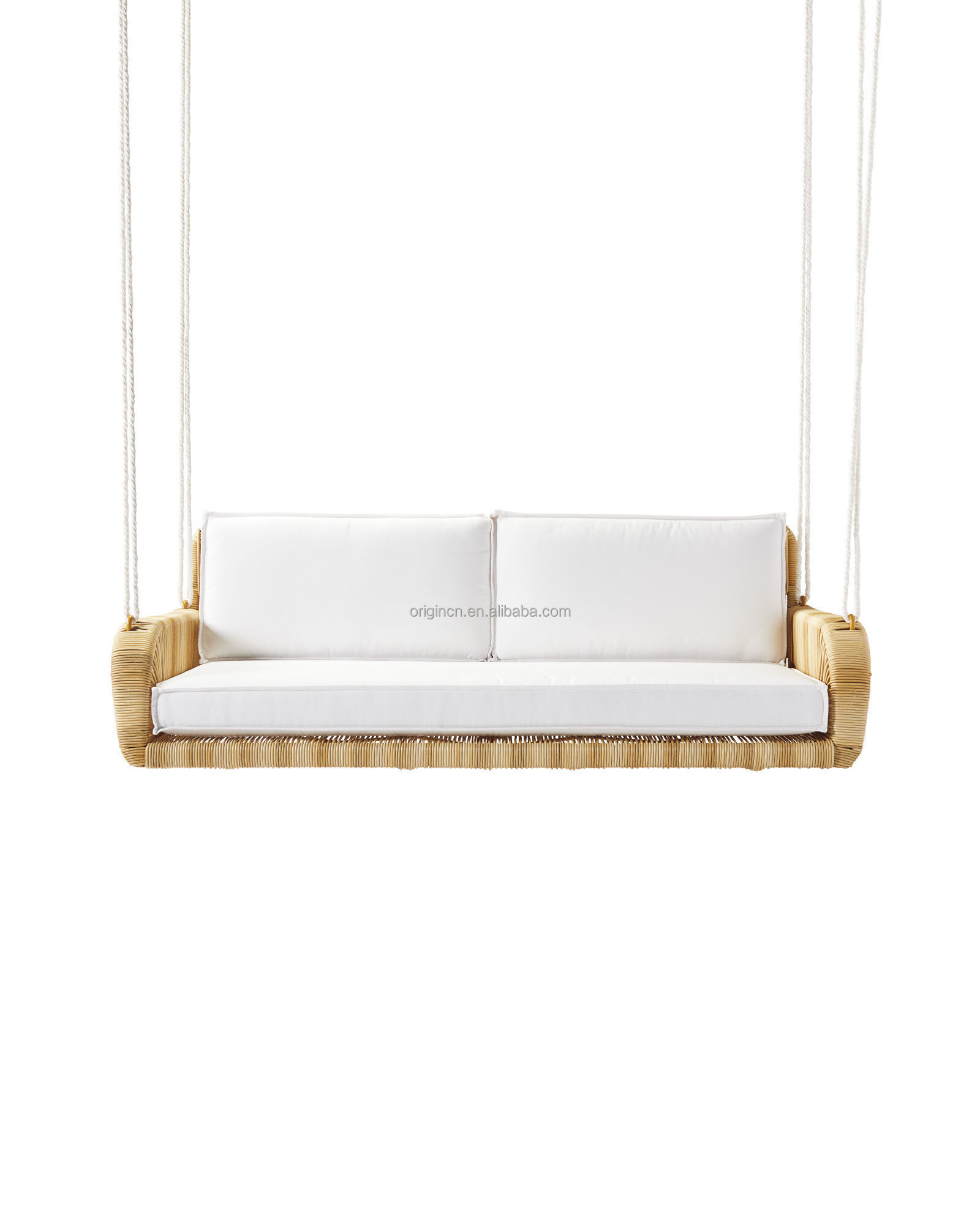 Modern leisure style 2 seat patio swing garden set hanging daybed wicker woven high quality outdoor rattan furniture
