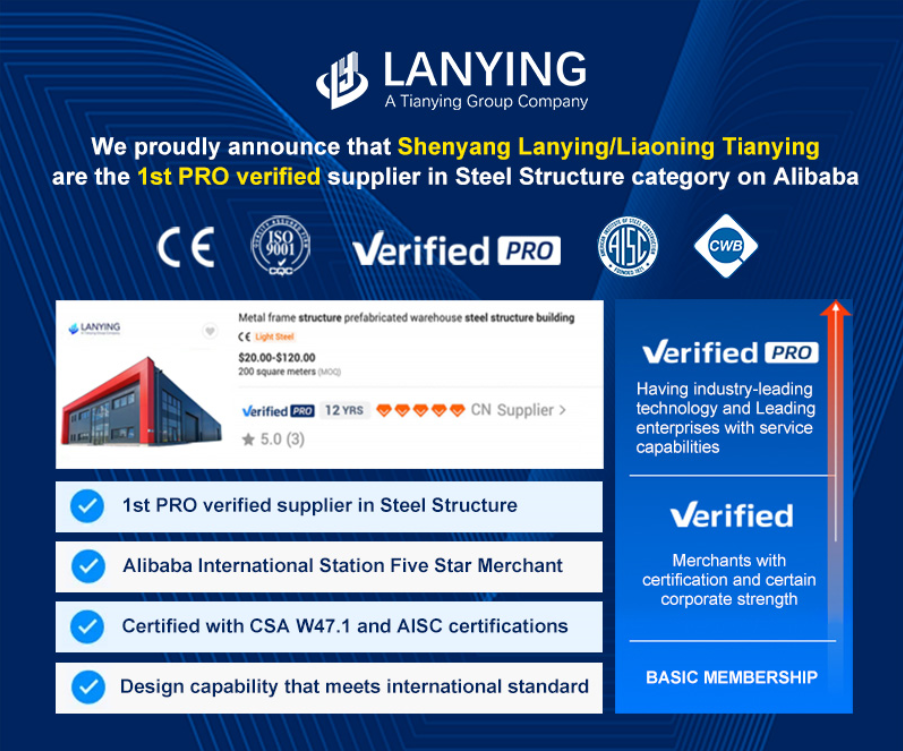 Shenyang Lanying Colored Steel Co., Ltd is a Tianying Group company. Tianying Group is a recognized giant in manufacturing prefabricated structures, steel buildings, wall and roof panels, steel coils, and sheets. Shenyang Lanying is certified with ISO9001, CE, AISC, CWB CSA W47.1 and counting.
