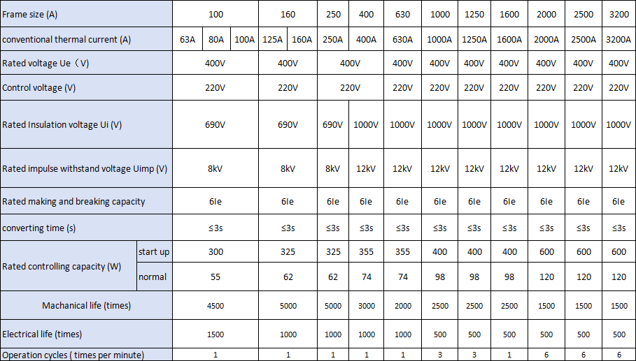 ATS series Automatic transfer switch mainly used for distribution or electromotor network, which under voltage 400V, rated voltage AC 400V, Rated current 32A-3200A.