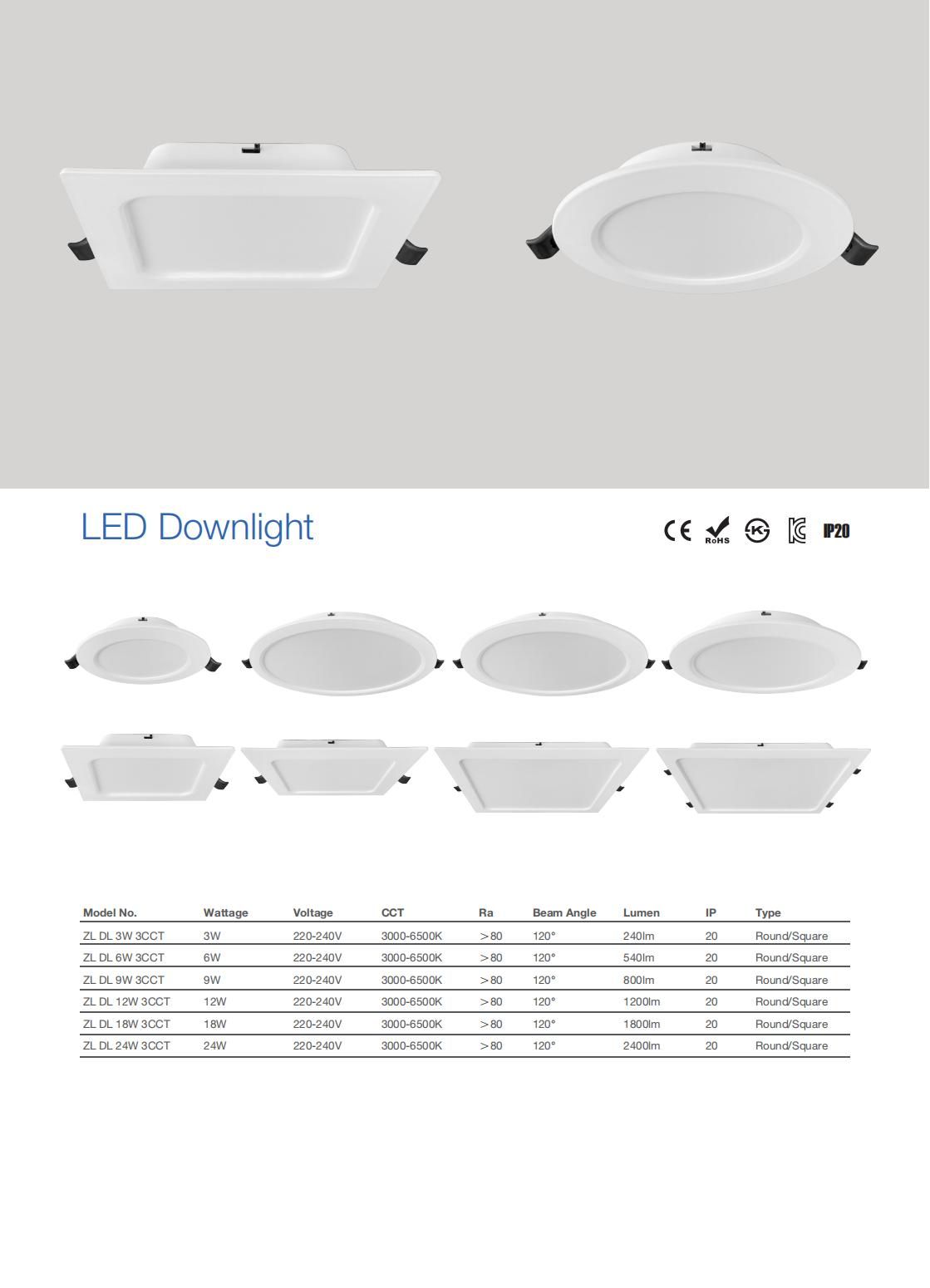 3CCT Dimmable Round Downlight, 3-24W 3000K-4000K-6500K Selectable,, Triac Dimming for Home Ceiling