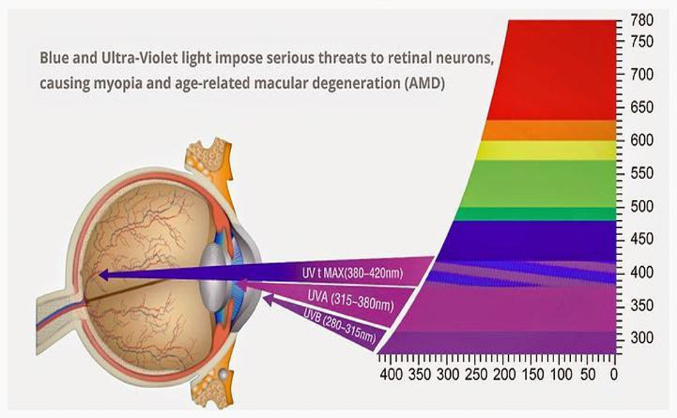 Macular Degeneration Blue light (HEV) penetrates all the way to your retina and has been shown that too much exposure to blue