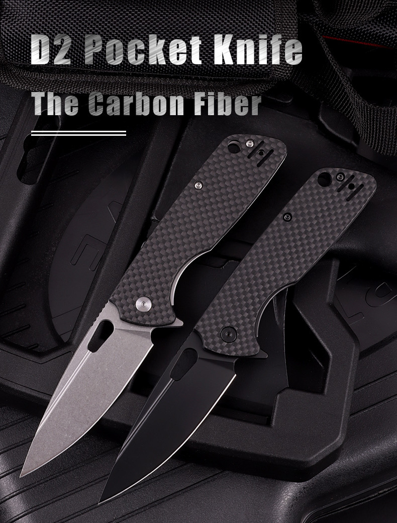 High Grade D2 Steel Edc Folding Pocket Knife G10 Carbon Fiber Handle Outdoor Camping Self Defense Survival Knives