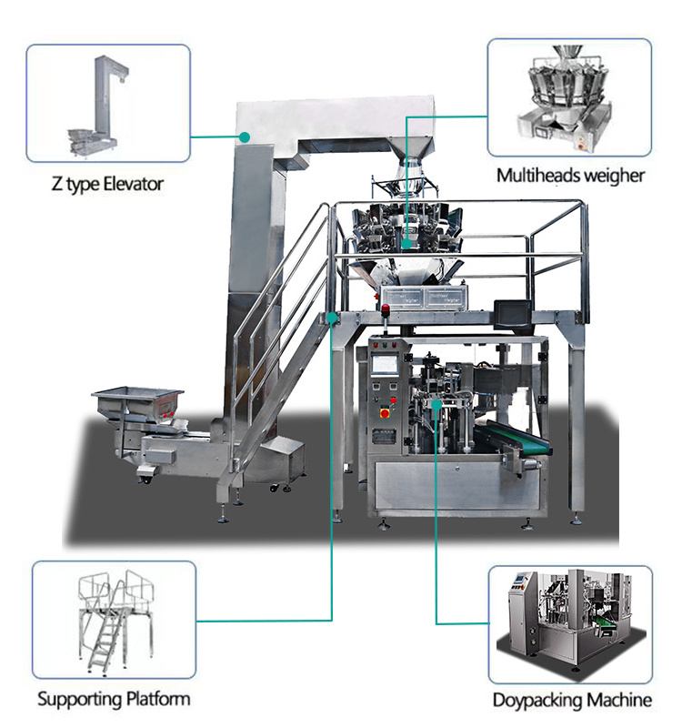 Multi-Function Full Automatic Candy Banana Chips Snack Grain Cat Food Premade Bag Zip Lock Bag Rotary Doypack Packaging Machine