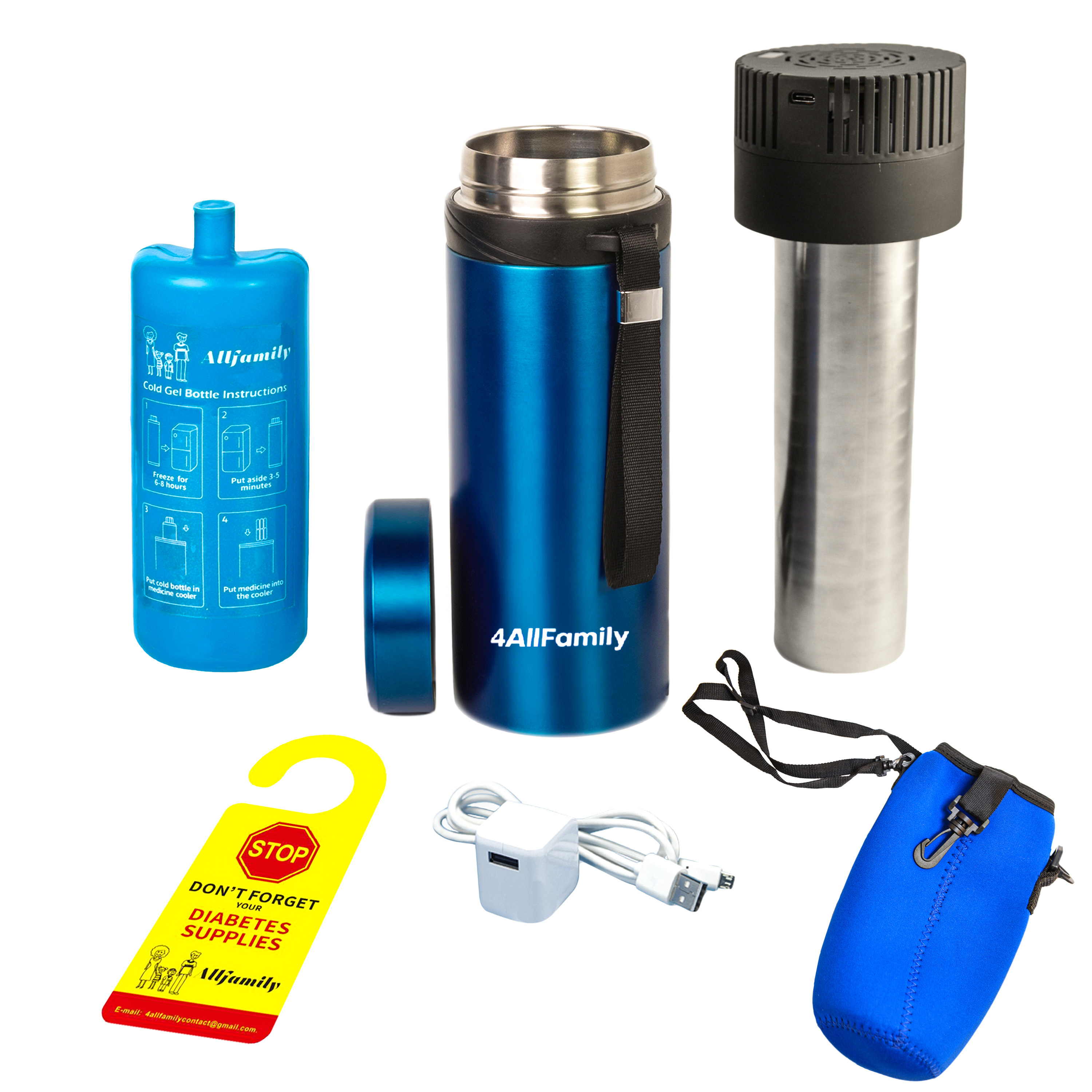 4ALLFAMILY Voyager AUTO Shut Off USB TSA Medication Cooler Travel Case Fridge Temp 36F-46F Biogel Ice Pack Medical Insulin Cooler