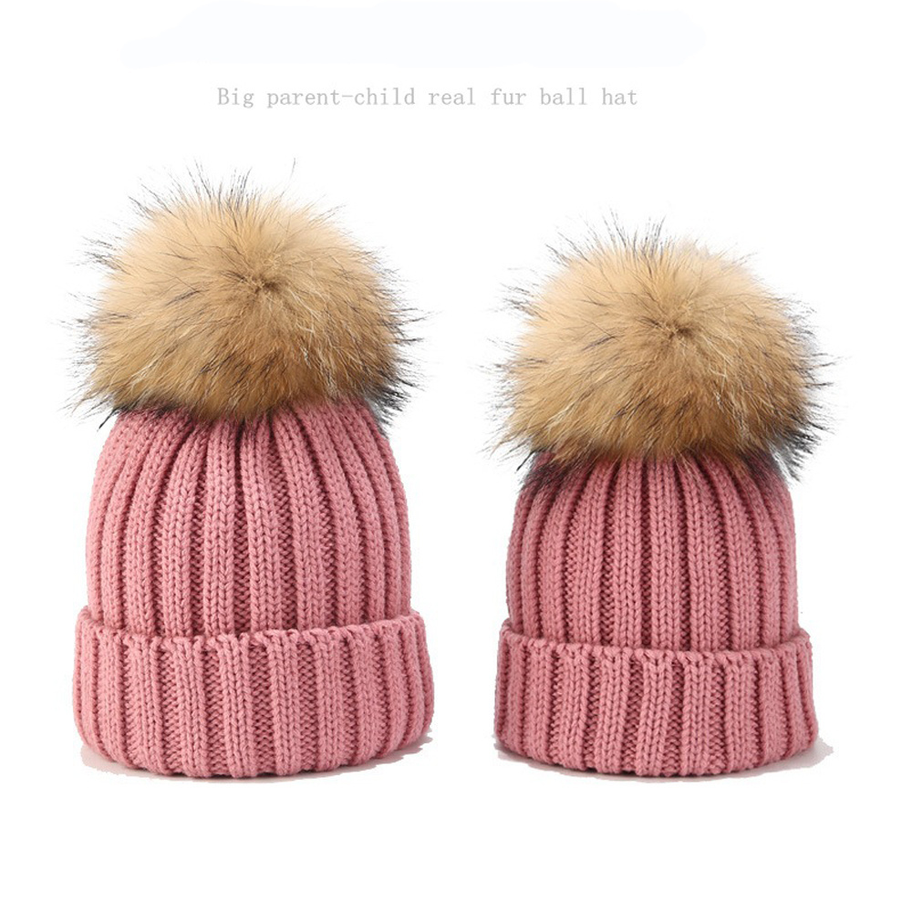 Winter Hats Fashion Raccoon Pompom Fur Ball Knitted Parent-child Kid Custom Warm Winter Hats for Women