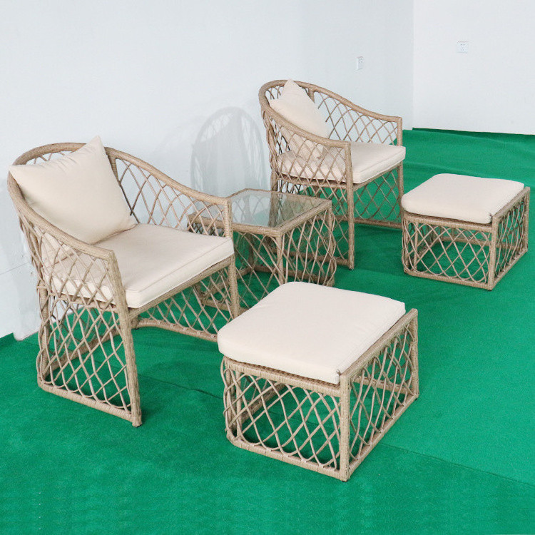 2 chairs, 1 table , 2 Cushions; 2 Pillow,2 footstool