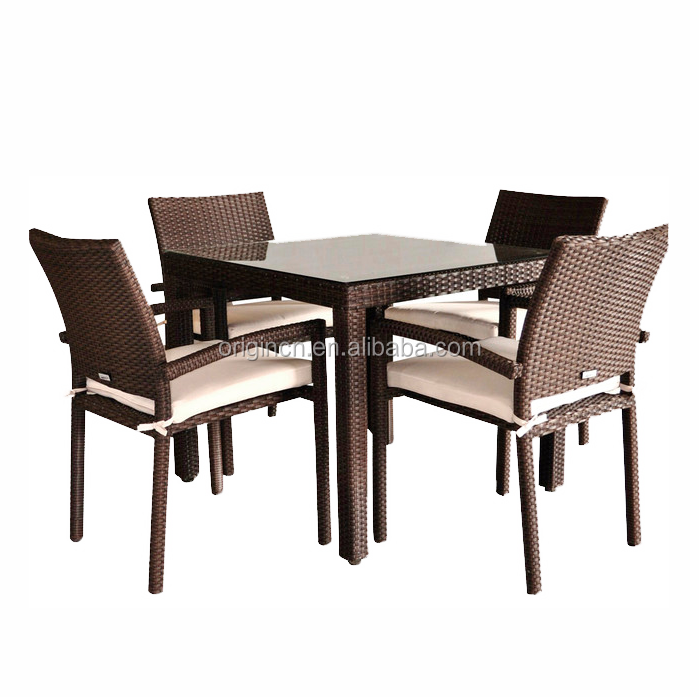Outdoor 4 seater square table and dining chair set synthetic rattan furniture from china