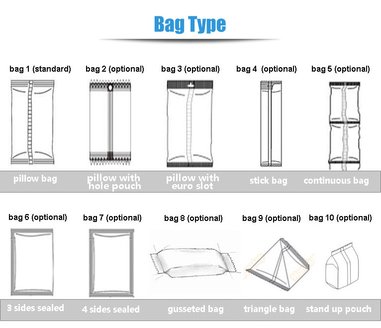 | Packaging rate | 5-60 bag/min | 5-60 bag/min | 5-55 bag/min | 5-20 bag/min |