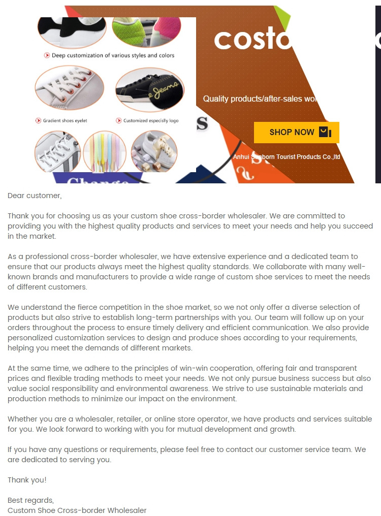 Anhui Sunborn Tourist Products, LTD. Established in 2006, it has 150 employees with a factory area of 3,200 square meters. It is located in Yuexi, Anhai Province, China, and we have office (Chinese shoes) in Wenzhou.
