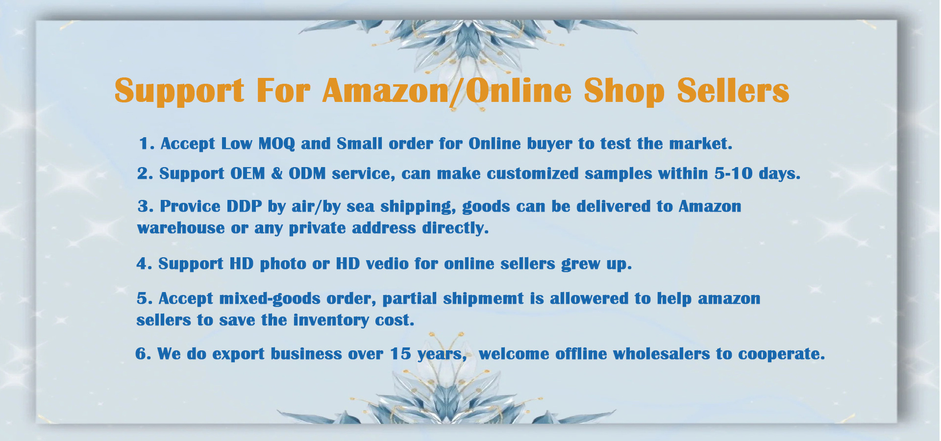 A: Yes, we are professional in Amazon orders, pls contact us for more details.